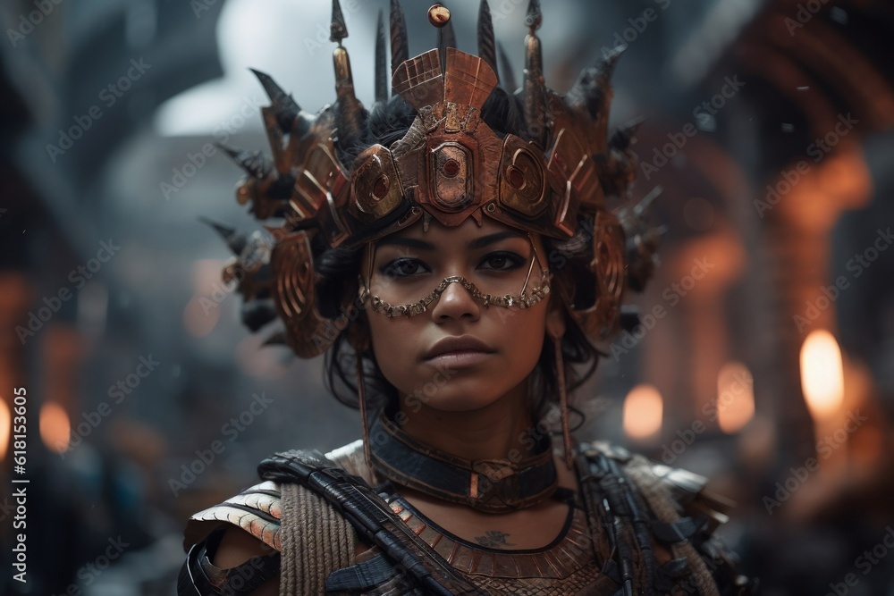 Portrait of a aztec woman warrior #618153605