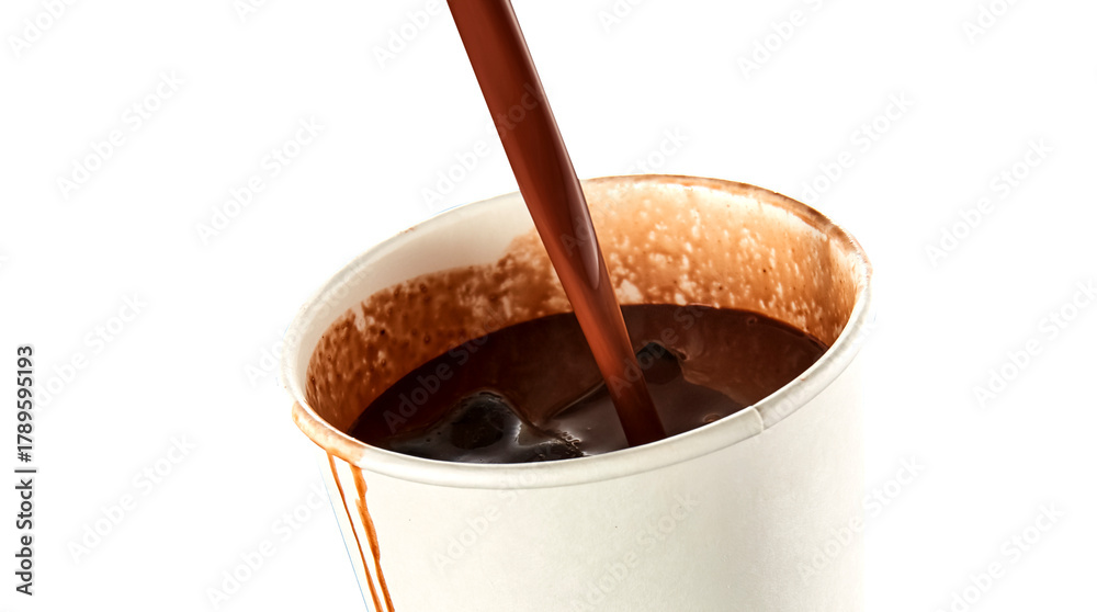 Pour the coffee into a white paper cup. #1789595193