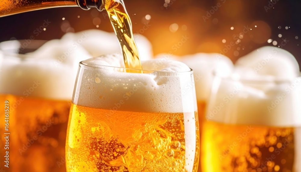 Pouring cold beer into glass with foam and bubbles in bar background #1641615219
