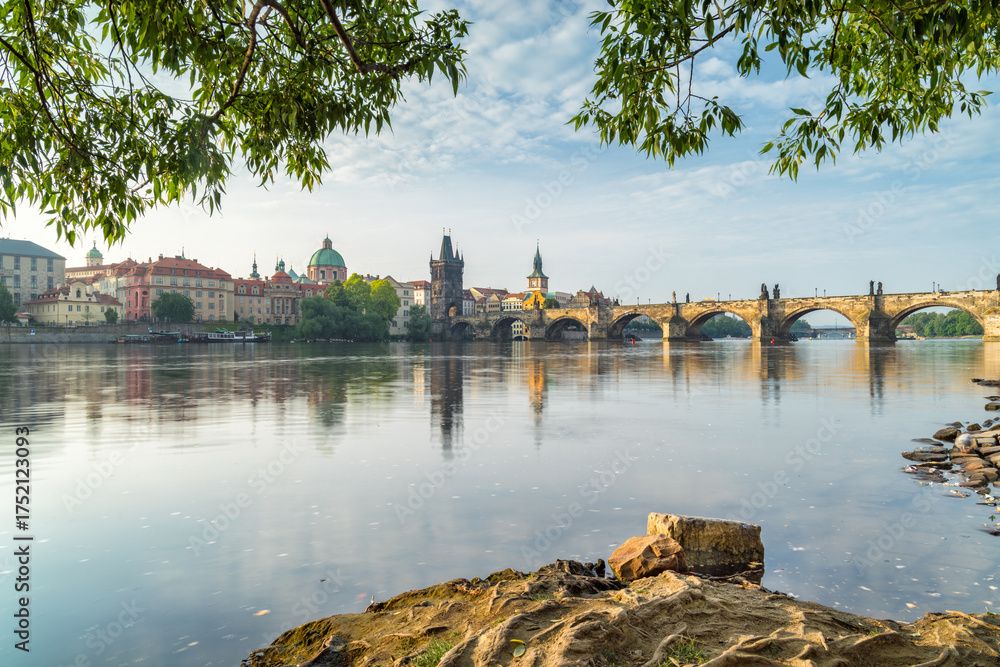 Prague cityscape with Vltava River and Charles Bridge, Czech Republic #1752123093