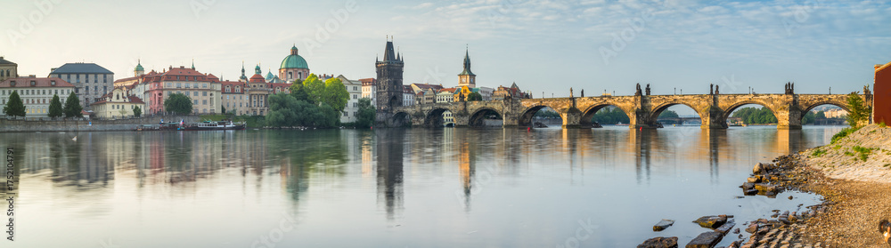 Prague skyline panorama with view of Vltava River and Charles Bridge, Czech Republic #1752104791