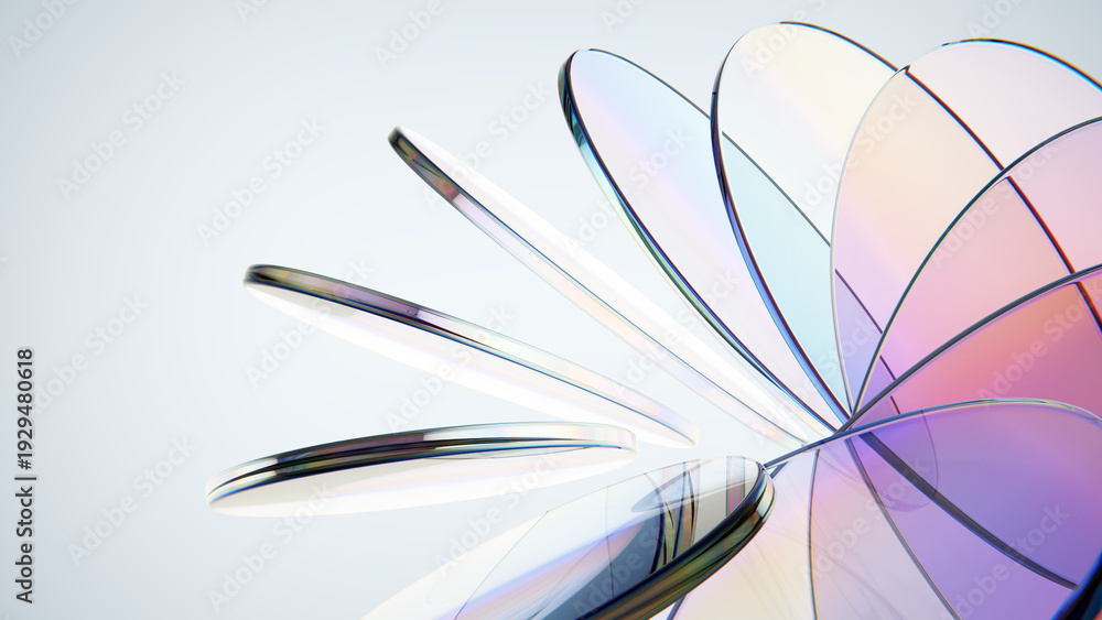 Precise elegant iridescent discs glass plates in minimalist movement #1929480618