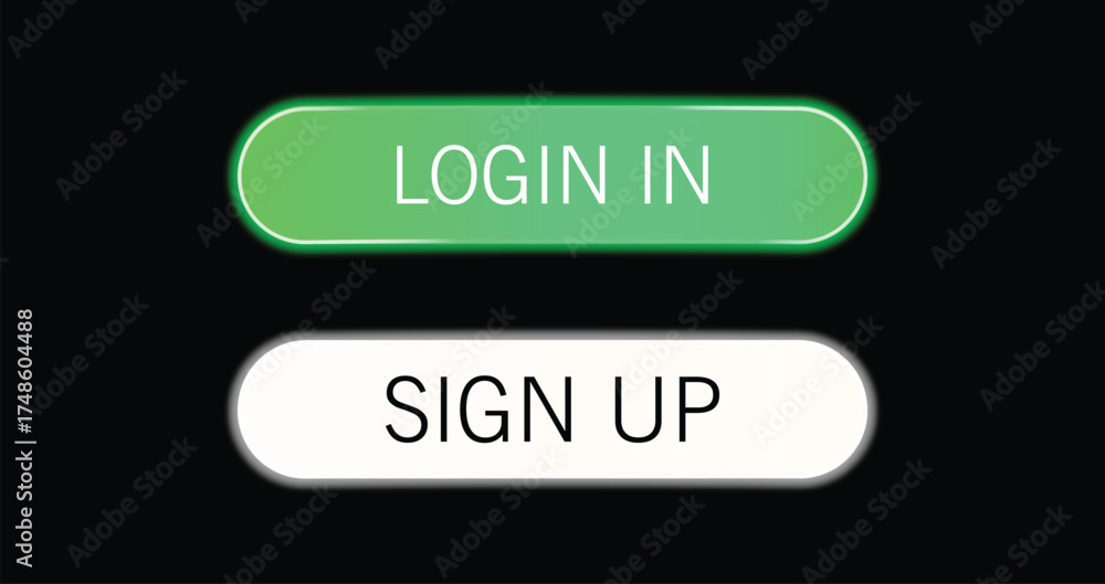 Premium glossy “Login” and “Sign Up” Buttons – Modern UI/UX Elements for Websites and Mobile Apps on Dark Background #1748604488