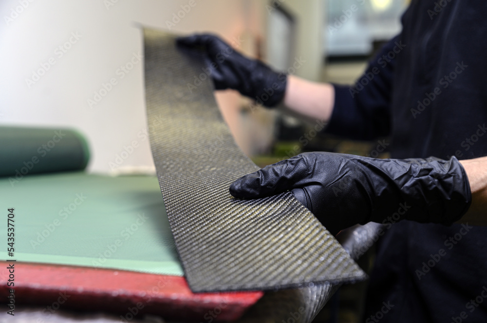 Preparation and cutting of a real carbon fiber sheet for the industrial production of a component for sports cars #543537704