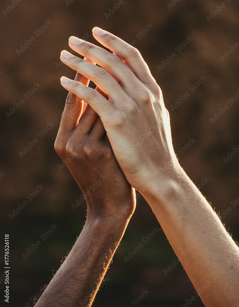Primer plano de manos entrelazadas, luz suave y fondo cálido, concepto de amor, apoyo y empatía, fotografía íntima y emocional #1776526118
