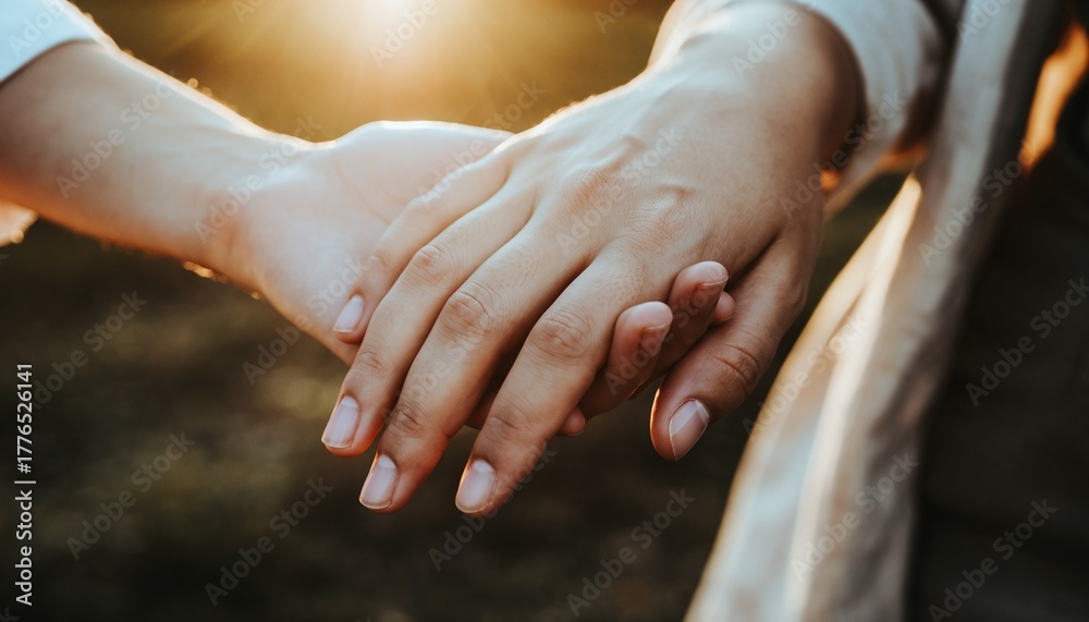 Primer plano de manos entrelazadas, luz suave y fondo cálido, concepto de amor, apoyo y empatía, fotografía íntima y emocional #1776526141