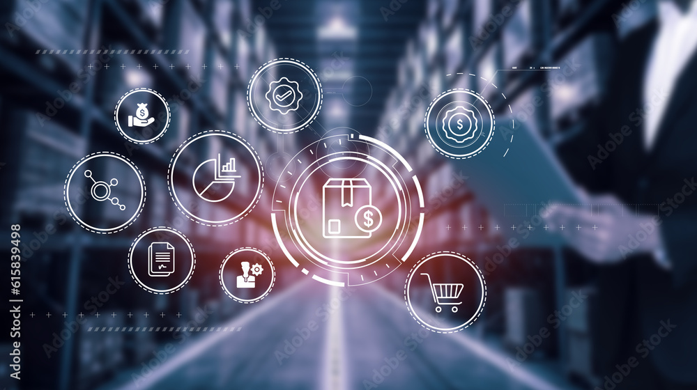 Procurement management concept: man with smart tablet sourcing and acquiring materials, products, and services from suppliers to meet the organization's needs. #615839498