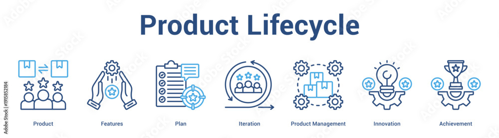 Product Lifecycle web banner icon set vector illustration concept for business with icon of Product, Features, Plan, Iteration, Product Manageme. #1915852184