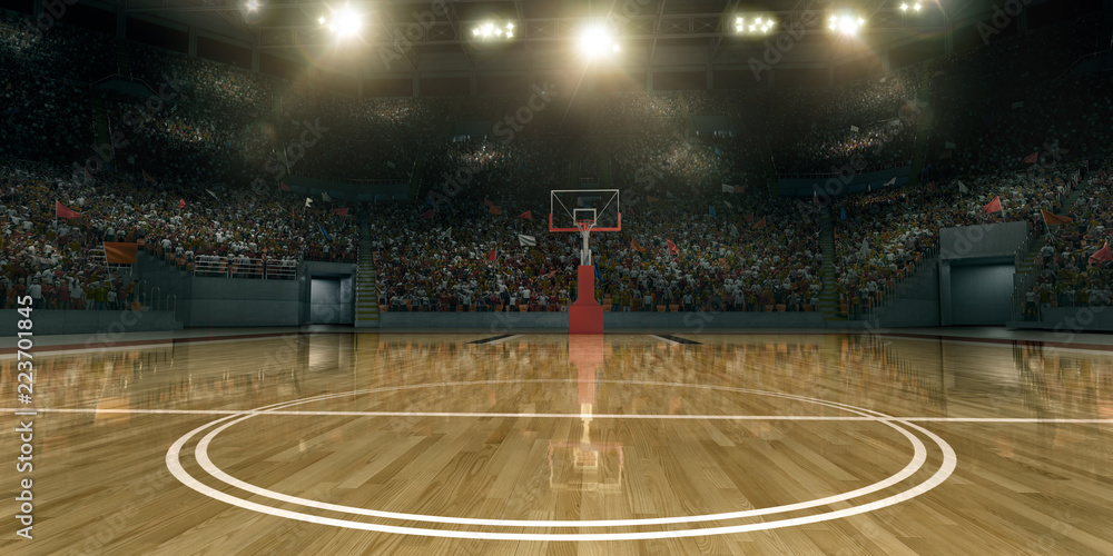 Professional basketball arena in 3D. Tribunes with sport fans #223701845