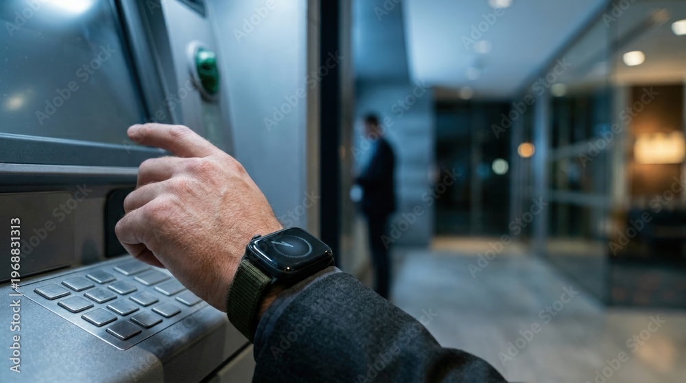 Professional Hand Tapping Smartwatch While Stand #1968831313