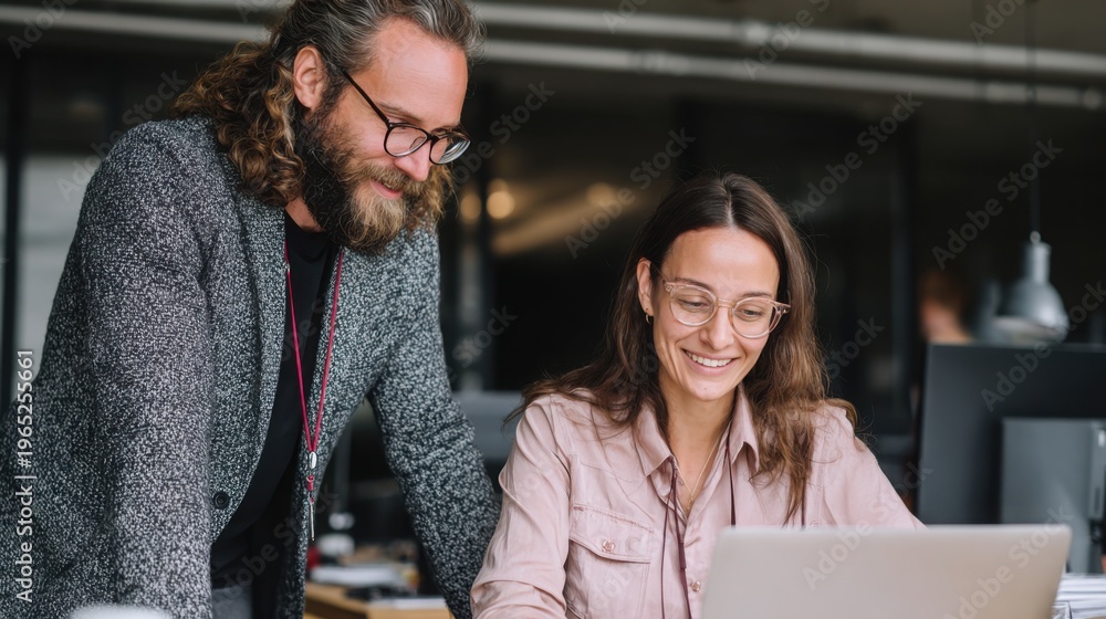 professionals wearing collaborate and talk at a modern office, showing teamwork, communication, and a positive work environment. #1965255661