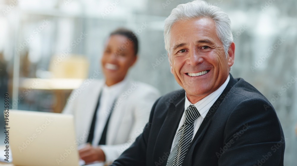 professionals wearing collaborate and talk at a modern office, showing teamwork, communication, and a positive work environment. #1965255930