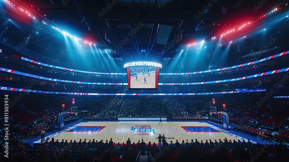promotion banner for the premiere of the NBA match , basketball Arena , Generative Ai #811303934