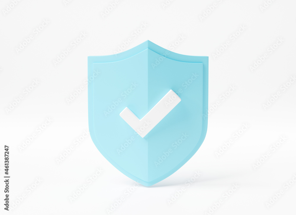 Protection padlock abstract shield security with lock data symbol icon on white background, Firewall access internet privacy sign, secure network web emblem template, 3D rendering illustration #461387247