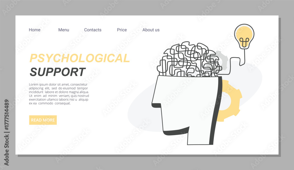 psychological support landing. brain issues, mental health care concept. vector cartoon social media template. #1777514489