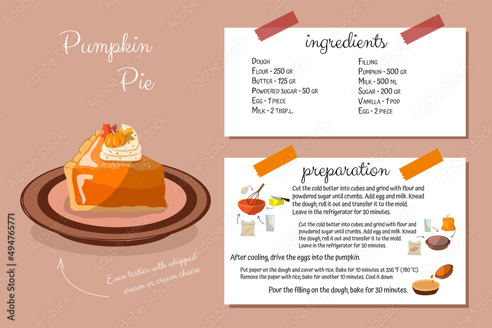 Pumpkin pie recipe. Step-by-step cooking with ingredients, home cookbook. Cooking is simple. Thanksgiving Day #494765771