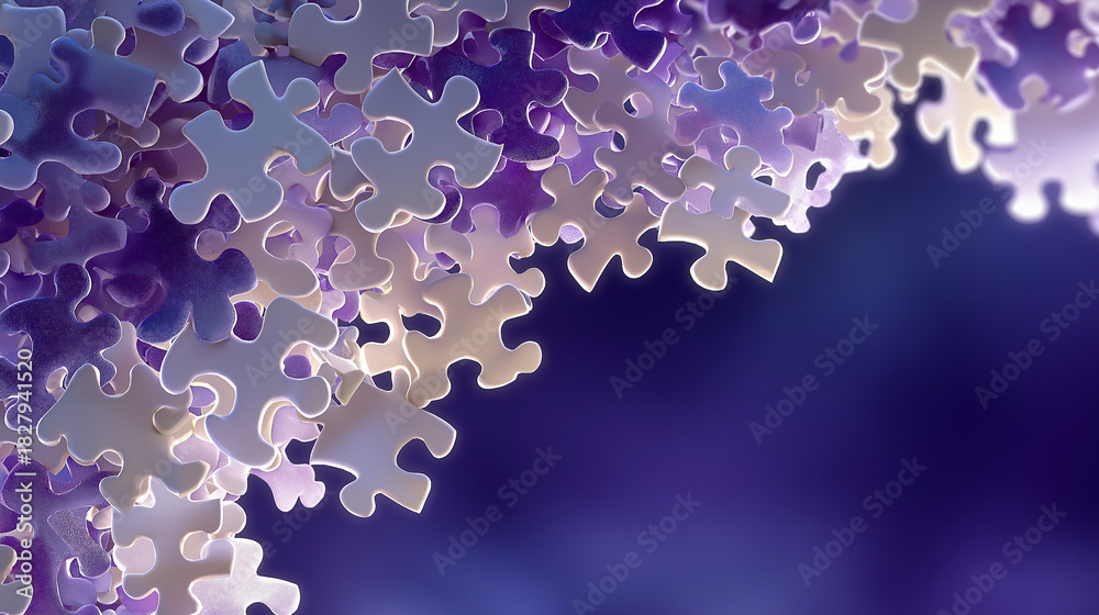 Puzzle Pieces: An abstract collection of interlocking puzzle pieces floating against a gradient blue backdrop, a visual metaphor of connection and problem-solving. #1827941520