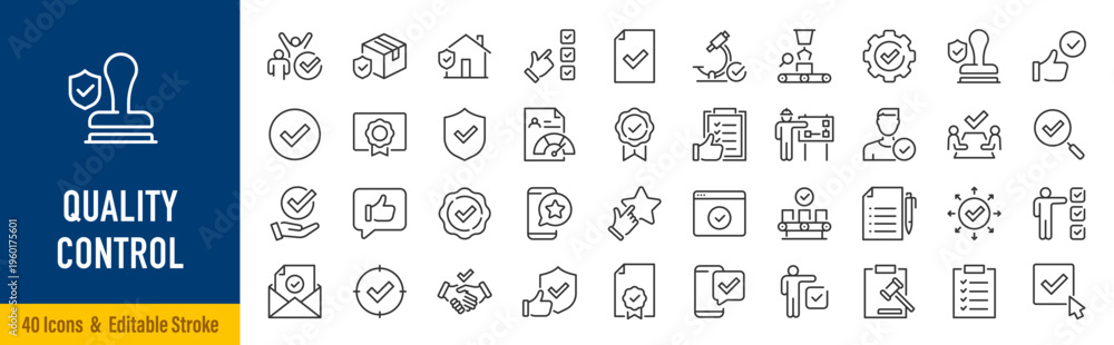 Quality Control web icons in line style. Certified, inspect, manufacture, production, analysis, collection. Vector illustration. #1960175601