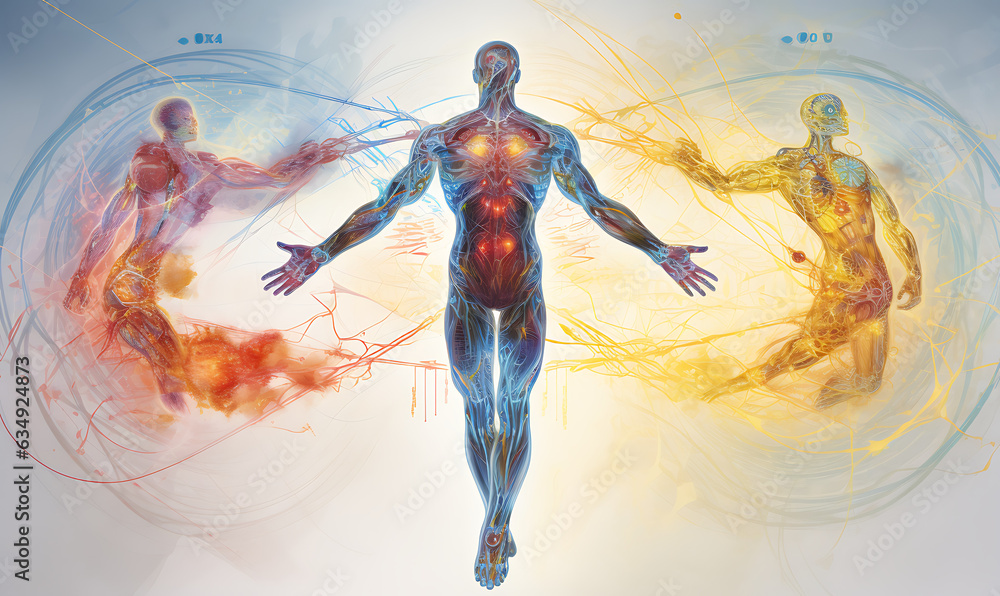 Radiant Connections Visualizing the Interplay of Human Energies and human body and color fully background and art man #634924873