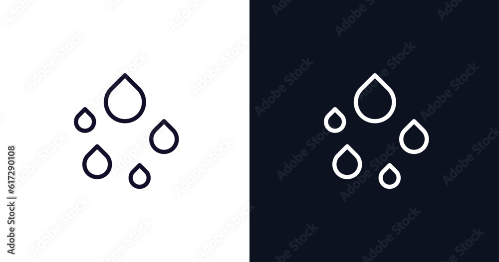 raindrops icon. Thin line raindrops icon from weather collection. Outline vector isolated on dark blue and white background. Editable raindrops symbol can be used web and mobile #617290108