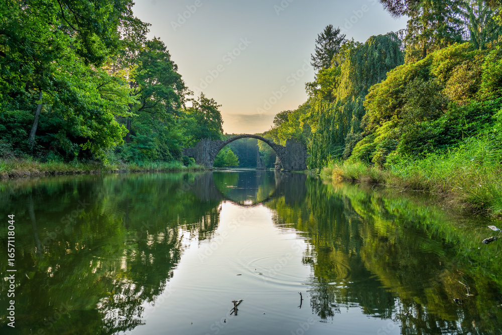 Rakotz Bridge (Rakotzbrucke, Devil's Bridge) in Kromlau, Saxony, Germany. Colorful summer, reflection of the bridge in the water create a full circle #1657118044