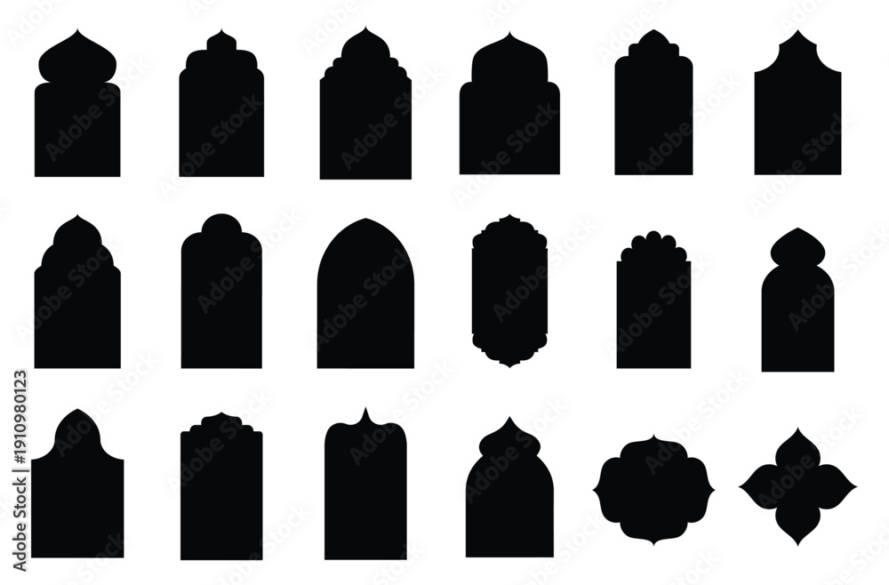 Ramadan kareem silhouette icon. Mosque gate. Islamic arabesque pattern. #1910980123