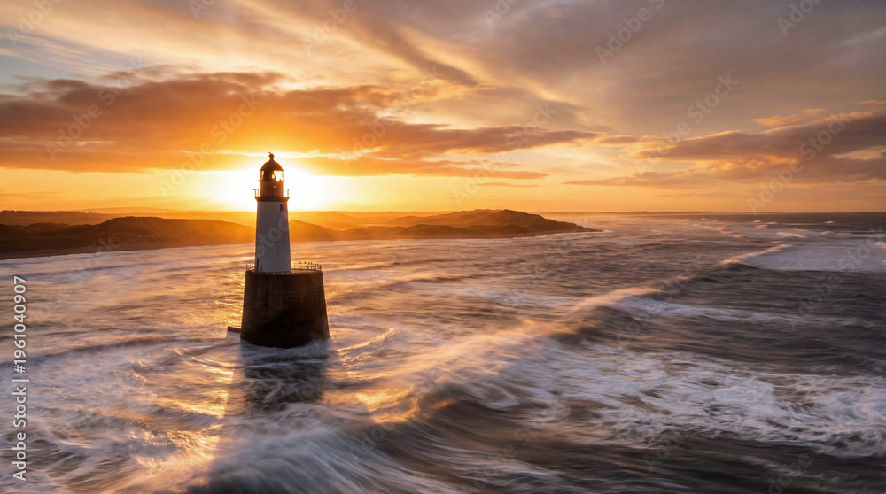 Rattray Head Lighthouse at sunset - Aberdeenshire, Scotland.. Photographed by the drone #1961040907