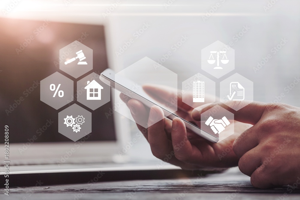 Real estate planning, hands on laptop #1802208809