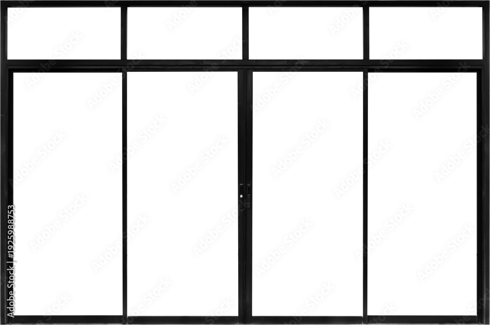 Real modern black store front double glass door window frame isolated on white background #1925988753