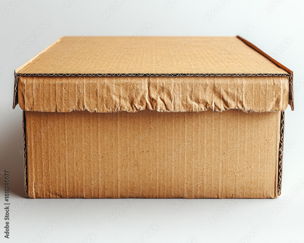 Realistic Cardboard Box Isolated on White Background with Textured Surface and Detailed Flaps #1811248677