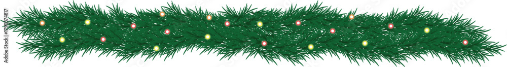 Realistic Christmas Garland Border with Soft Glow Lights — Elegant Pine Holiday Decoration #1790874817