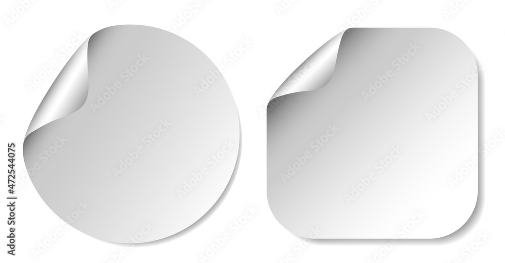 Realistic label square and circle sticker icon template vector design illustration with round curl corner isolated on white background. #472544075