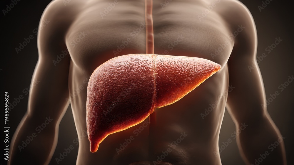 Realistic rendering of a human liver in anatomical position within a torso #1969595829