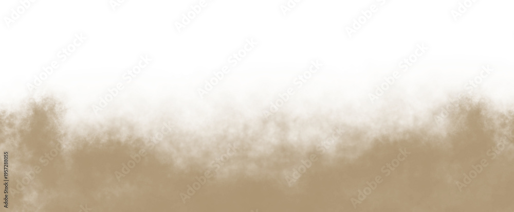 Realistic sand dust particles cloud isolated on transparent background. Brown sandstorm smoke explosion rising effect, fine soil powder overlay for compositing, covering and design elements, PNG #1957288055