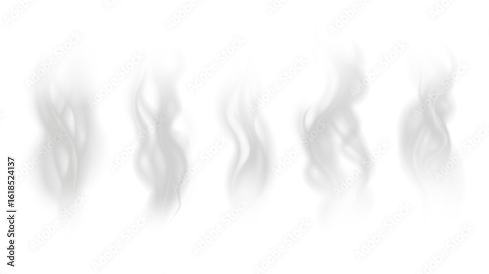 Realistic steam or smoke on hot tea, coffee, food. PNG Stock royalty free. #1618524137