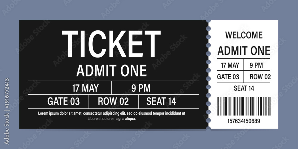 Realistic ticket admit for festivals, event, theater, concert, play. #1916772413