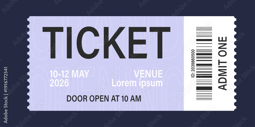Realistic ticket admit for festivals, event, theater, concert, play. #1916772541