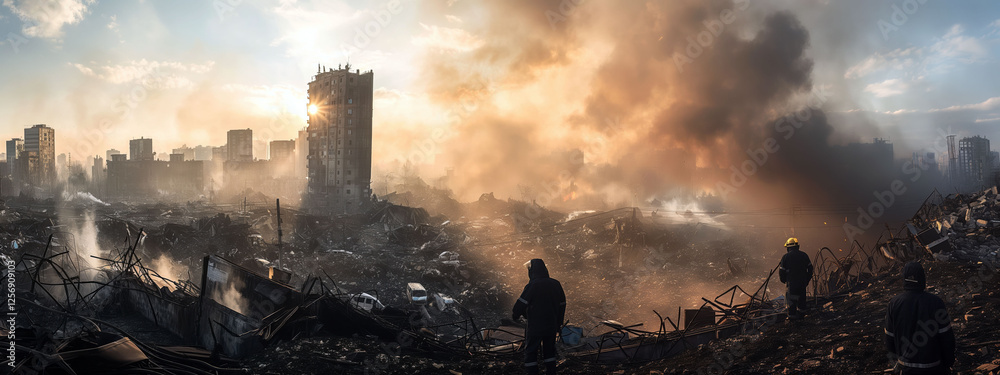 Recovery efforts unfold in urban disaster zone in Ukraine with smoke rising from devastated structures #1256909103