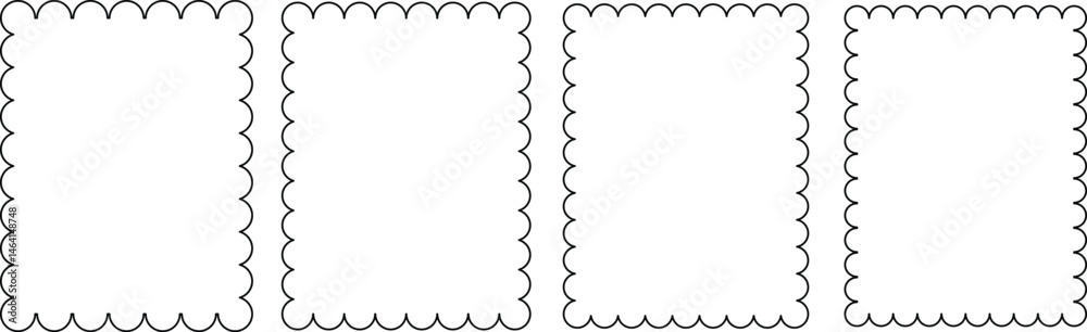 Rectangular frames with scallop edges set. Rectangle frames with wavy edges. Silhouette rectangular text boxes, rectangular shapes with wiggly borders. Empty square scalloped frames. #1464148748