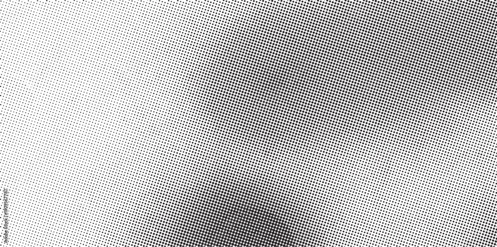 Recurso de fondo con texturas de semitono de color, en tonos grises con forma circular, recurso de diseño. En formato rectangular alargado con espacio para texto o imagen #1909367787