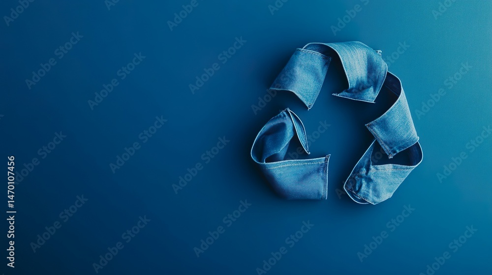 Recycling Concept Crafted From Denim Arrows Circular Icon On Blue Minimalist Backdrop #1470107456