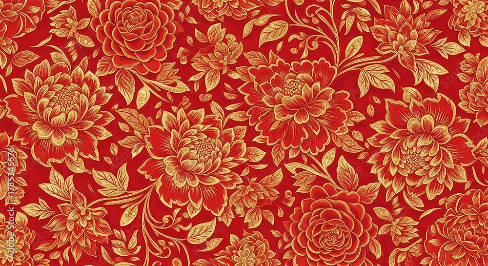 Red and gold traditional chinese floral pattern wallpaper #1785345576
