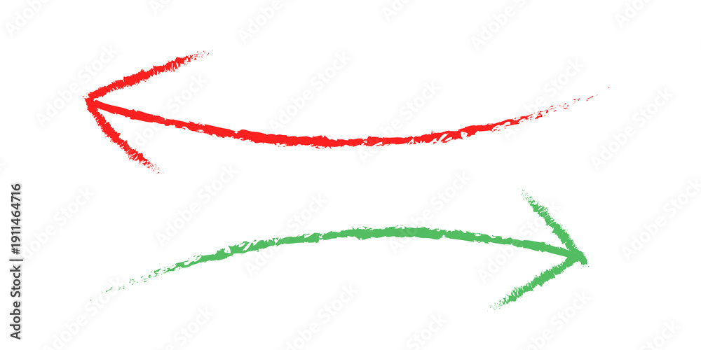 Red and green hand-drawn scrabble brush stroke curved arrows isolated on a transparent background #1911464716