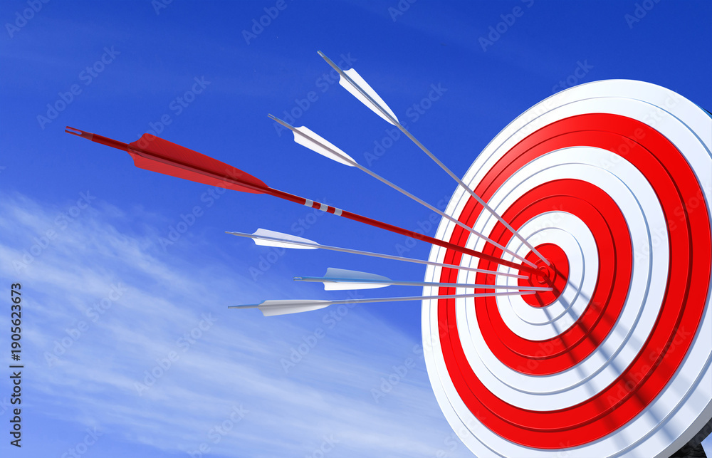 Red arrow hitting the center of a target, concept of success and achievement. Concept for business 3d illustration #1905623673