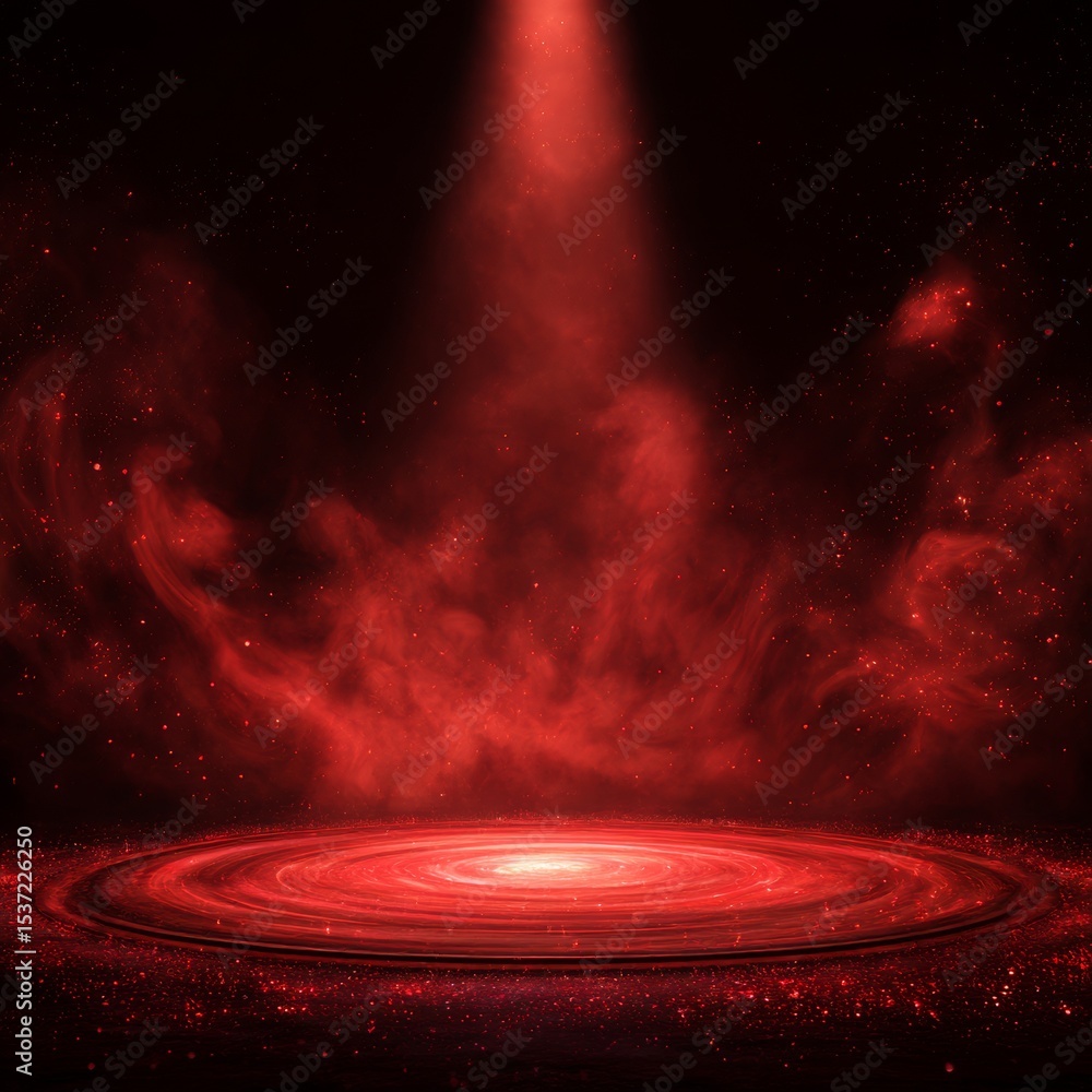 Red background. Stage podium with red smoke, golden spotlight and glitter on dark background. Theatre show and award ceremony concept. Red abstract background #1537226250