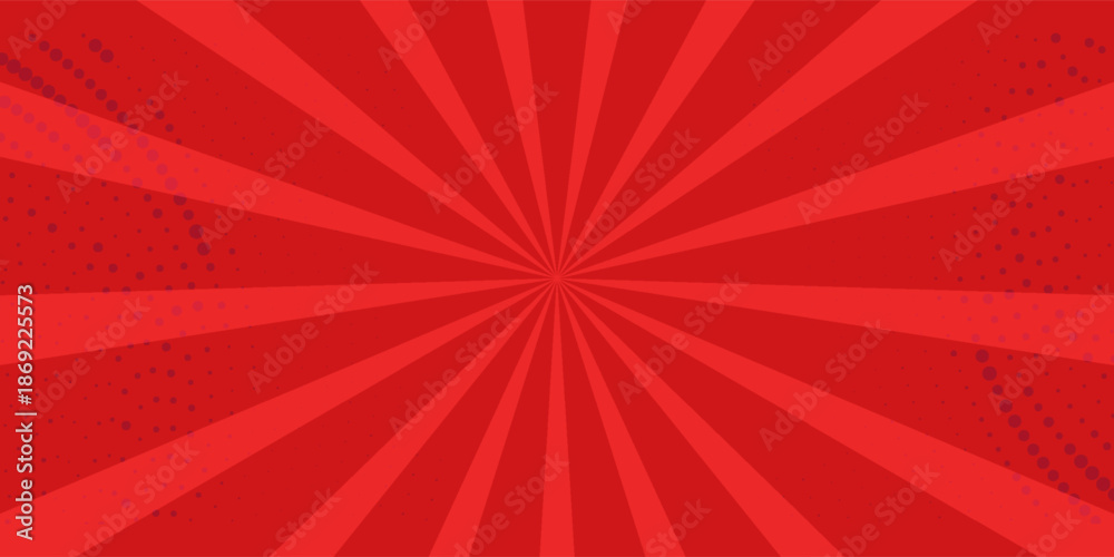 Red comic sunburst effect background with halftone. pop art comic-style vector background. Suitable for templates, sale banners, events, ads, web and pages #1869225573