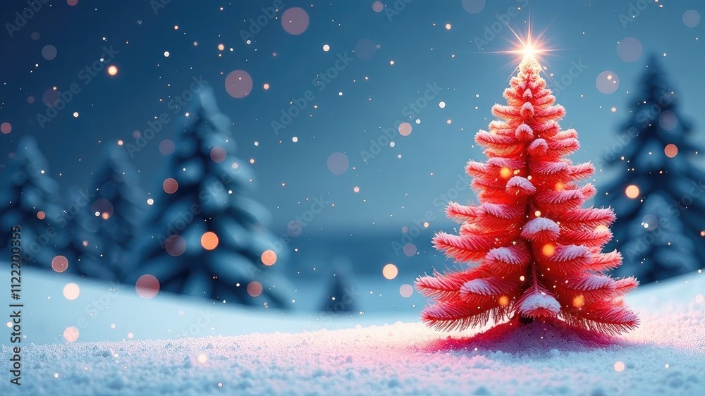 red Festive New Year tree with a star. New Year's winter forest #1122200355