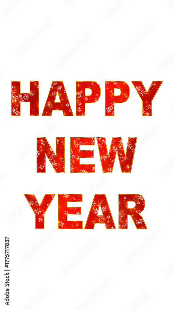red happy new year text with snowflakes and glitter stars on transparent background,png winter christmas holiday celebration isolated vertical social media design element #1775717837