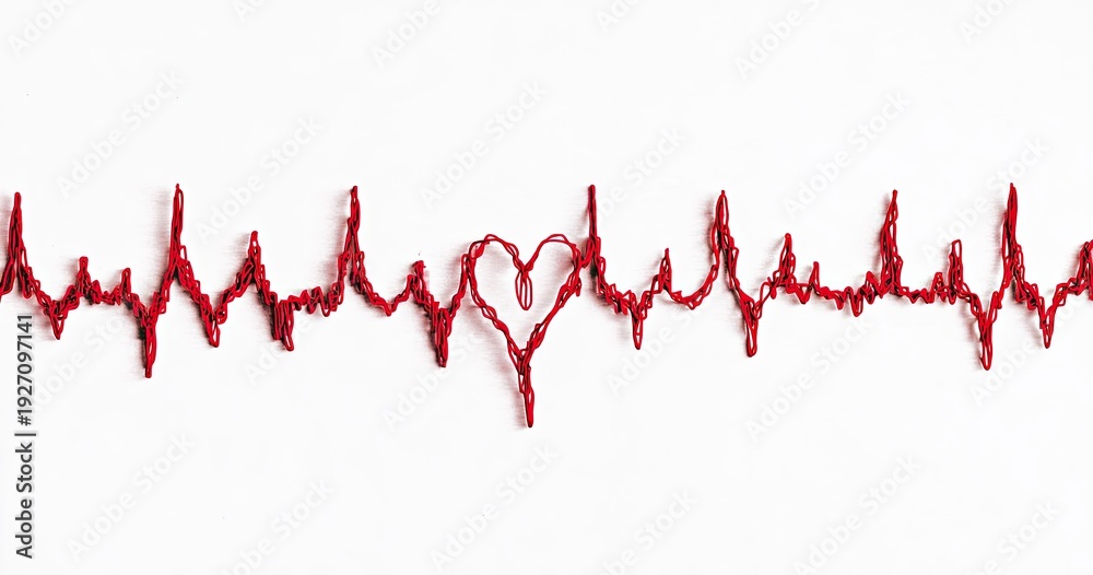 Red Heartbeat EKG Line with Heart Symbol on White Background. #1927097141