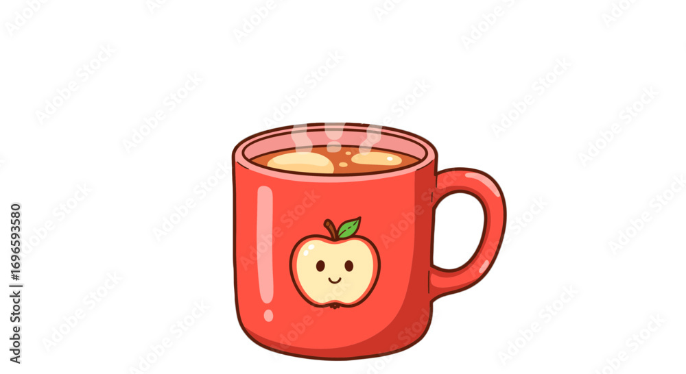 Red mug with apple cute drink beverage hot tea coffee cartoon illustration graphic design digital art on transparent background #1696593580